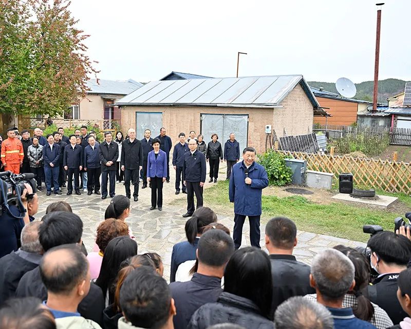 9月6日至8日,中共中央总书记、国家主席、中央军委主席习近平在黑龙江考察。这是7日上午,习近平在遭受洪涝灾害的哈尔滨尚志市老街基乡龙王庙村,察看水毁房屋重建情况。新华社记者 殷博古 摄