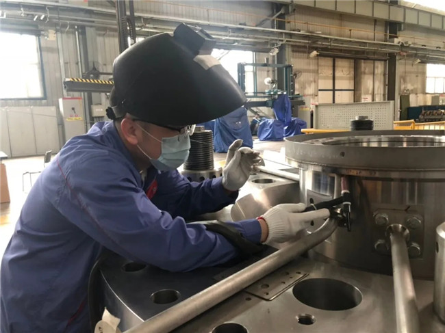 撸起袖子,关键时刻冲锋在前。为了提升产品质量,确保关键焊接部件满足探伤要求,动装公司核电制造部党员王向春通过勤学苦练,掌握了双手都能熟练焊接的技能,成为公司唯一完全掌握该技能的“能工巧匠”。复工复产期间,福清5号、6号核电项目全台辅助系统需完成142条焊缝的焊接任务,且全部焊缝需要做射线探伤,检测要求极高。此外,该部件中有四套管路的14条焊缝,由于焊接位置不能改变,焊接空间狭小,障碍物较多,焊接难度极大。王向春再次迎难而上,运用左右手全位置焊接,仅用一个半月就完成了原本计划两个半月周期的焊接任务,且焊缝全部符合探伤要求,为核电项目产值目标完成提供了有力保障。正是这些奋战在一线的党员,用辛勤汗水擦亮胸前的党徽,竖起了一面面鲜红的旗帜。