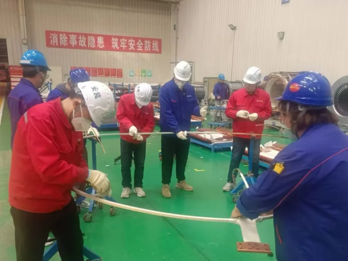 活动现场,经验丰富的老师傅耐心细致地传授包绝缘的每一环节与技巧,从精选材料到精细操作,每一细节都彰显出他们对工作的热爱与对品质的执着追求。党员及积极分子们全神贯注地学习,积极参与实践,将理论知识灵活运用于实际操作中,不断提升个人专业技能水平。在1205-469-B攻关项目中,圆满完成铜环包绝缘工作,不仅加快了生产进度,更发挥先锋模范作用,带头攻坚克难,增强了党员的服务意识和实践能力,彰显了团队协作的强大力量。